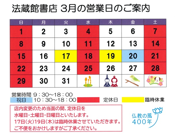 法藏館書店 3月の営業日